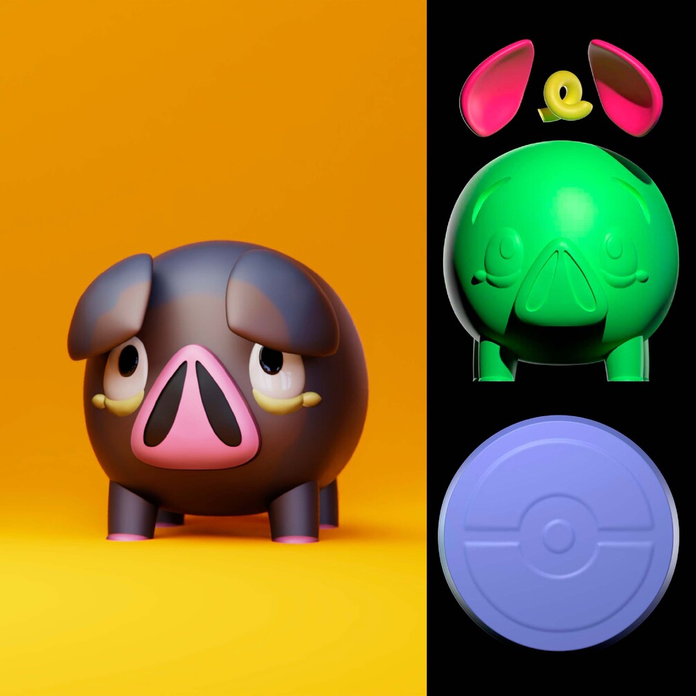 Bring the beloved Lechonk, the pig Pokémon, to your collection with our detailed 3D model. This model is split into three separate pieces - body, ears and tail - allowing you to print and assemble Lechonk on your own 3D printer. This model is great for Pokémon fans who wants to have their favorite characters in their collection and you can have the flexibility of printing with different colors or materials, giving you the ability to customize your own Lechonk.